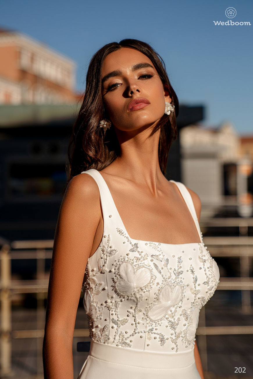 EDNA COLLECTION - Style no.3: A timeless bridal gown with a lace bodice and square neckline, exuding sophistication. The A-line skirt adds flow and movement, making it a perfect choice for brides seeking elegance with a touch of vintage charm.
